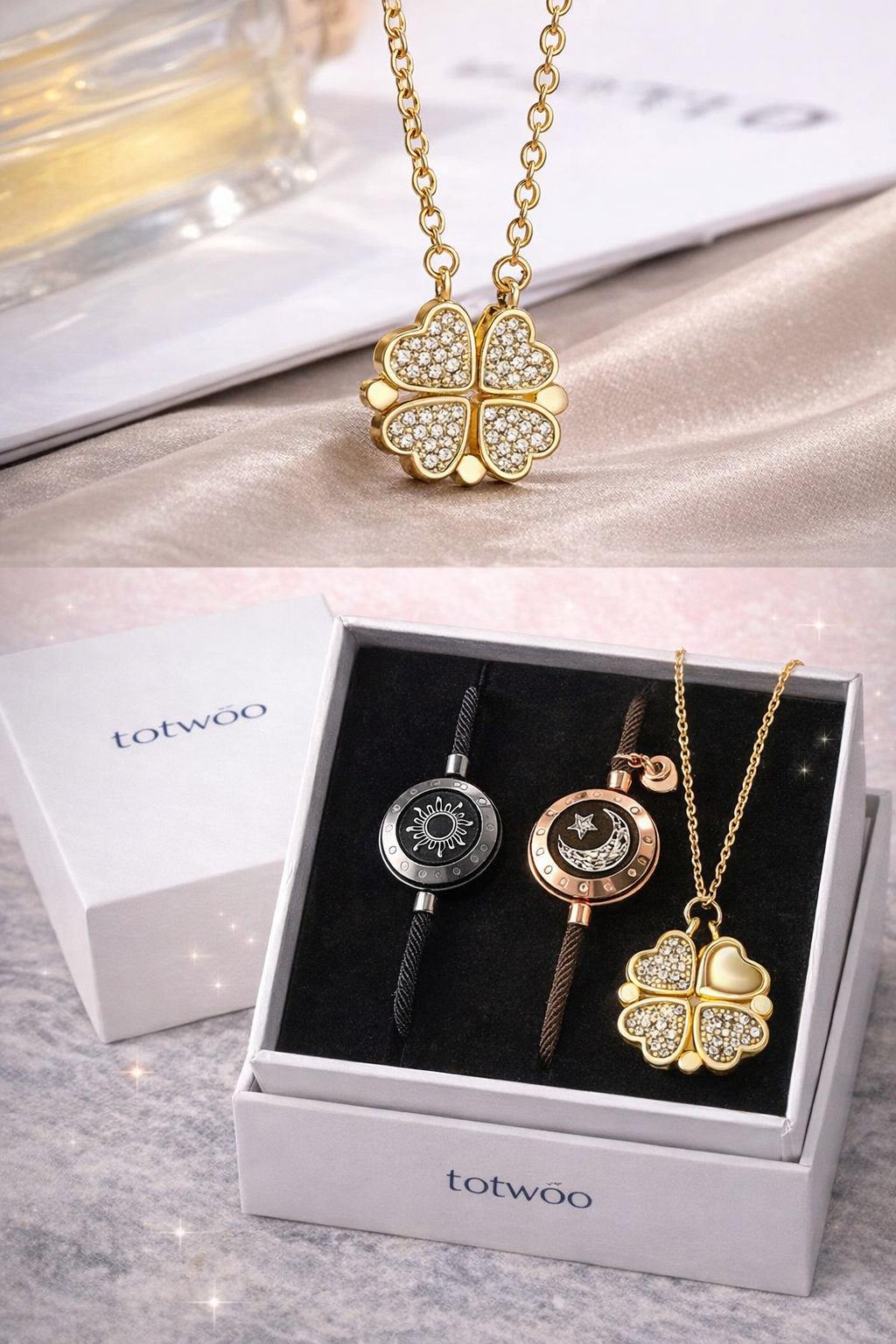 ¡Nuestras PULSERAS SOL Y LUNA INTELIGENTES TOTWOO ORIGINALES convierten cada vibración en un “te extraño” y cada destello en un abrazo a la distancia! Con solo tocar tu pulsera, la de tu pareja vibra e ilumina al mismo tiempo, sin importar cuántos kilómetros los separen. Así, cada uno sabe al instante que el otro está pensando en él/ella.